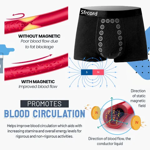 Magnetska polja u ovim gaćicama djeluju promičući zdrav protok krvi , stimulirajući prostatu i potičući optimalno funkcioniranje. Ovo ne samo da poboljšava protok mokraće, već i ublažava simptome seksualne disfunkcije često povezane s problemima s prostatom.
